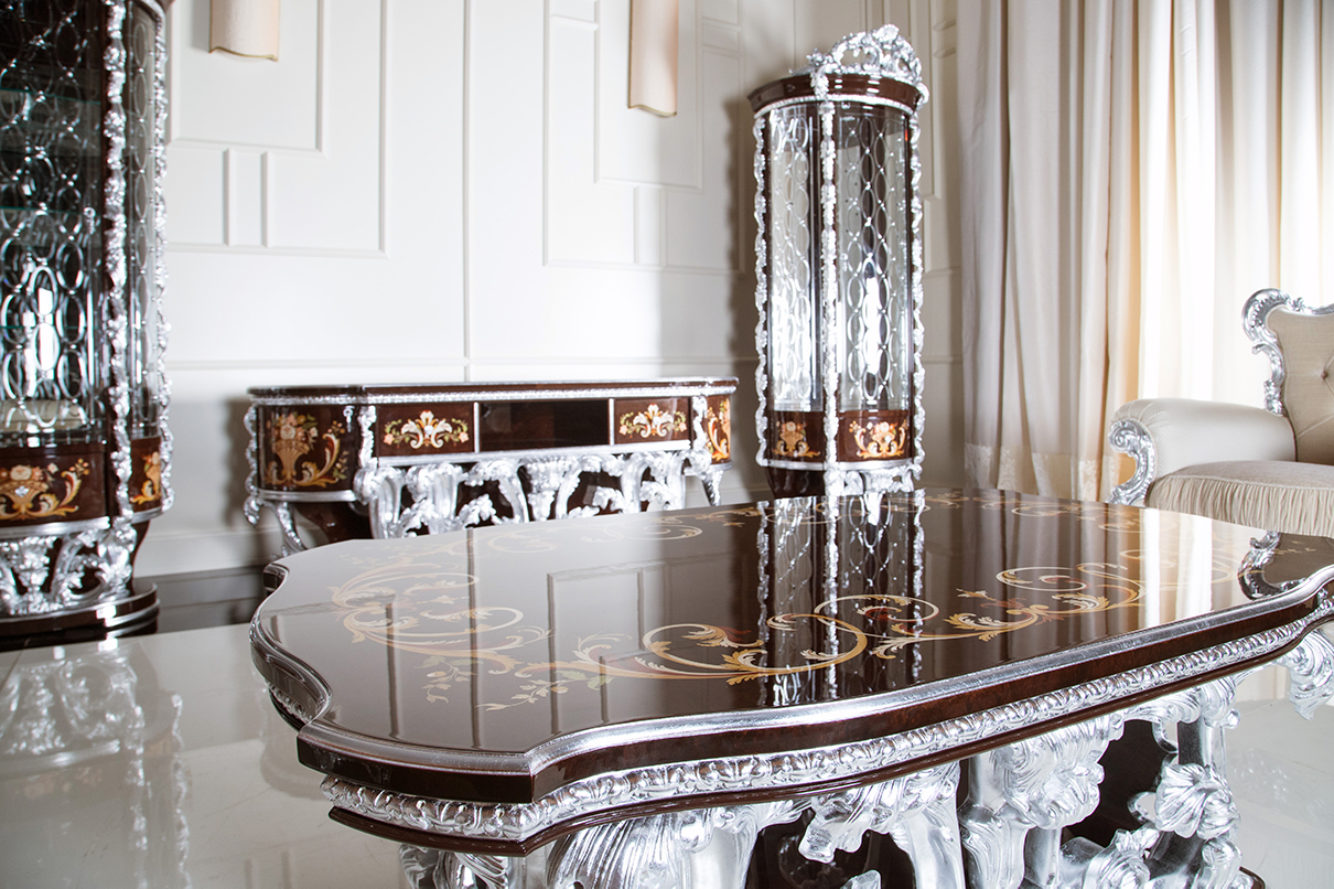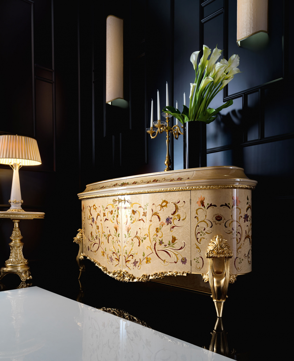 Flora Collection redefines the concept of classic style furniture for contemporary living and for a cosmopolitan clientele. The skin changes but the soul of Socci’s products remains unchanged: elegant inlaid decorations, fine textures and selected briar, 100% natural glossy finish and details in ORO VIVO gold leaf.